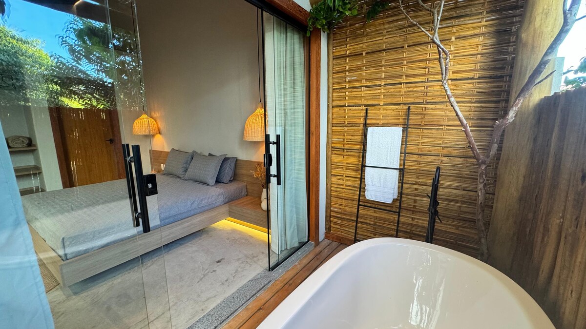 ¡Te damos la bienvenida al Pier Bungalow, el amor de @villaareiapreta! Déjate cautivar por su encantadora y acogedora arquitectura que se inspiró y diseñó para que los huéspedes puedan contemplar la ventana al infinito (el cielo). El alojamiento está a solo 4 minutos a pie de Praia da Areia Preta, así como a pocos pasos del mercado, la panadería, el restaurante y la gasolinera. Disfruta de días de descanso, paz y armonía en el bungalow del muelle. ¡Esperamos que tengas mucho entusiasmo y atención!