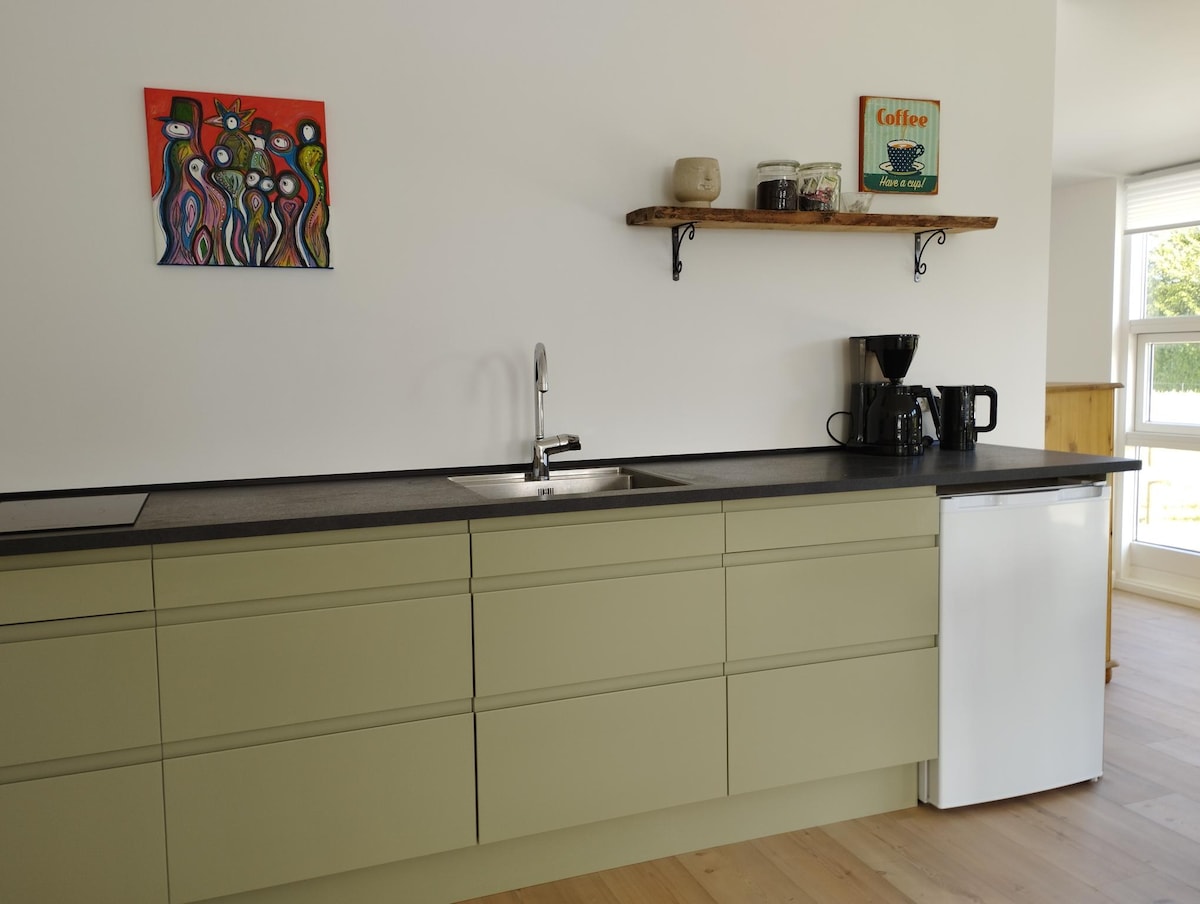 100 sqm newly renovated guesthouse on a biodynamic, self-sufficient farm with unobstructed, beautiful views over the rolling hills of Southern Zealand. Surrounded by a rich array of animals and plants with meadows, forest, and permaculture gardens, life is thriving. Visit the farm shop for fresh fruits, vegetables and unique treasures. A rare, peaceful place for quiet retreats, relaxation and magical nature experiences. Breakfast and dinner available upon request. Contact us for more info.