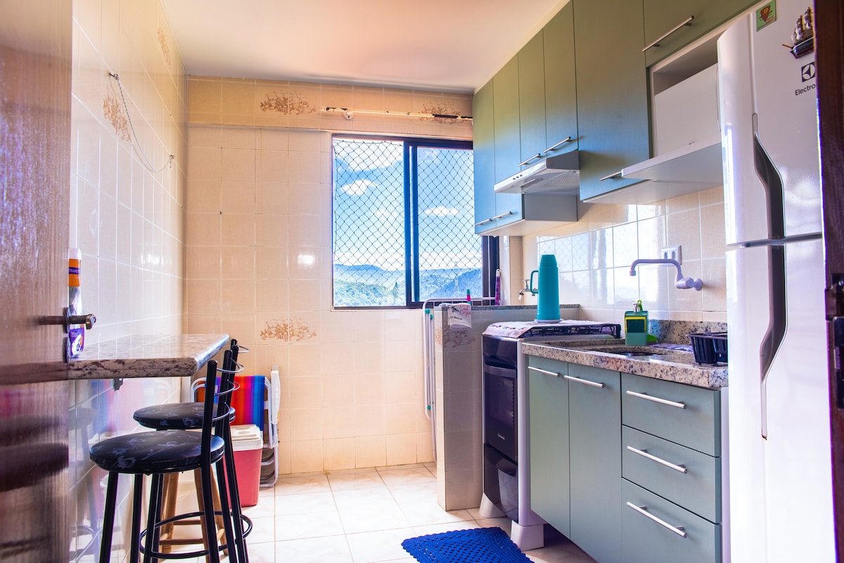 Excelente apartamento con amplio garaje, dos baños, cocina completa, lavadora, refrigerador con congelador, amplio balcón para momentos especiales, junto a la plataforma de pesca, feria de artesanía y zoológico de Mongagua. Cómodas camas, plaza de aparcamiento, ascensor, cámaras de seguridad en todo el edificio, portero las 24 horas Vistas al mar en mucha gente - cocina - habitación - sala - baño