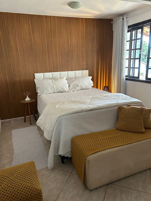 Chalé do Aconchego es un nuevo loft rústico (INAUGURADO EL 23/02/2022), construido en medio de la naturaleza. El balcón con jacuzzi ofrece una hermosa vista del bosque, el mar en el horizonte y una puesta de sol inolvidable. Aire acondicionado ,TV de55pulgadas y vista ancha. Una suite bellamente decorada con una cama tamaño queen completamente nueva, ropa de cama y toallas blancas. La cocina está totalmente equipada. Tiene estufa, nevera, microondas, cubiertos, utensilios de cocina y vajilla.