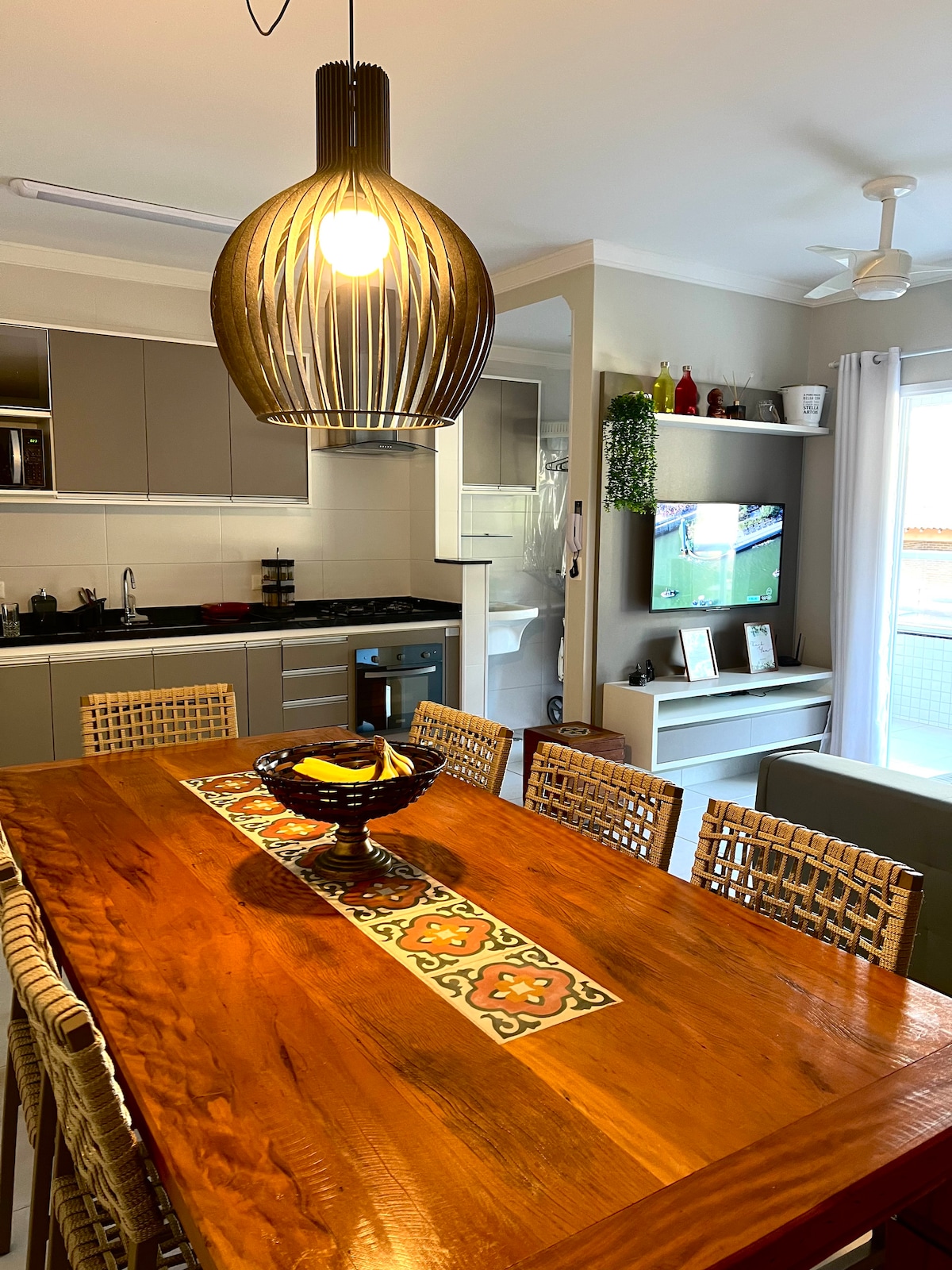 Apartamento NUEVO de alto estándar a 1 minuto del mar. Decoración cinematográfica y comodidad para su familia. Aire acondicionado en todas las habitaciones, cocina y sala de estar integradas, smart TV en la sala de estar y dormitorios. Son: 2 dormitorios, dos de los cuales son suites (todos con smart TV) Sala integrada con balcón y cocina 1 baño Cocina completa Balcón gourmet con parrilla eléctrica Internet de alta velocidad 2 lugares de estacionamiento Condominio con esparcimiento completo, piscina, sauna, gimnasio, parrilla y mini-cancha