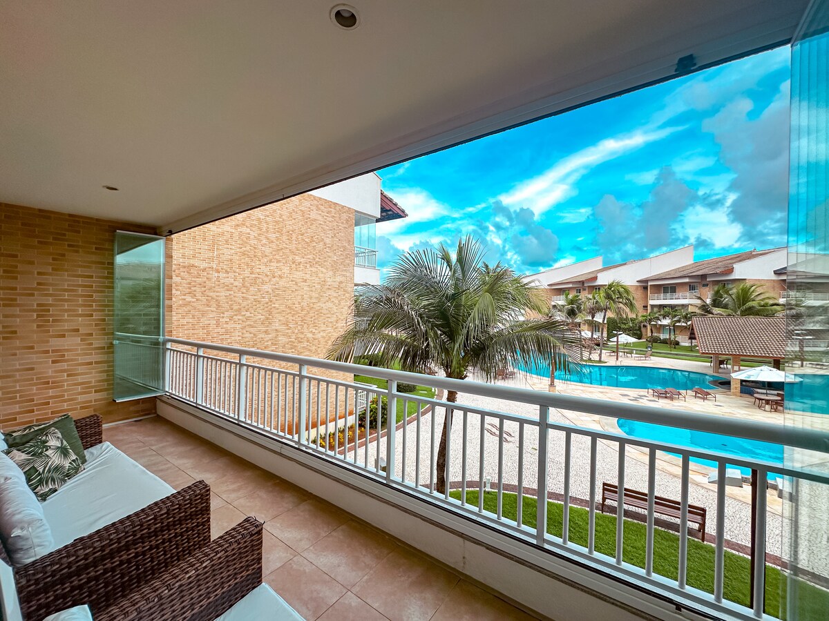 🌊 ¡APARTAMENTO TOTALMENTE CLIMATIZADO CON VISTAS AL MAR DE LA PLAYA DE PORTO DAS DUNAS! Disfruta de las vistas al mar después de un día de diversión en Beach Park, que está a solo 5 minutos de aquí. ✅ AMPLIO BALCÓN con vistas al mar 🚀 WIFI DE ALTA VELOCIDAD ❄️ UNIDAD TOTALMENTE CLIMATIZADA 👶 PERFECTO PARA FAMILIAS 🏢 ASCENSOR: comodidad total 🍹 OCIO COMPLETO EN EL RESORT con acceso directo a la playa 🚗 2 PLAZAS DE GARAJE