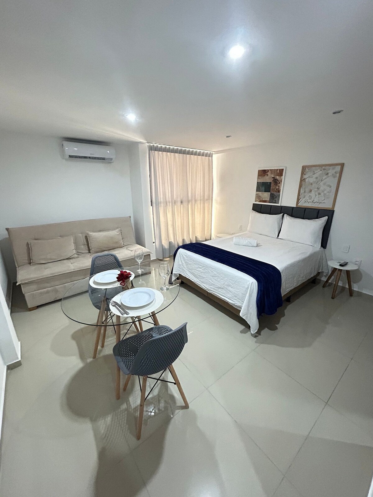 Nuestro apartamento es nuevo y sofisticado pie de arena con vistas espectaculares del mar Caribe. ¡Tendrás un espacio integrado con una cocina equipada, cama completa y ropa de baño, wifi, smartv, cama doble, sofá cama, espacio de garaje propio y mucho más! check-in a partir de las 3:00 p. m. salida hasta las 11 de la mañana 👶 Cuna previa solicitud y disponibilidad previa