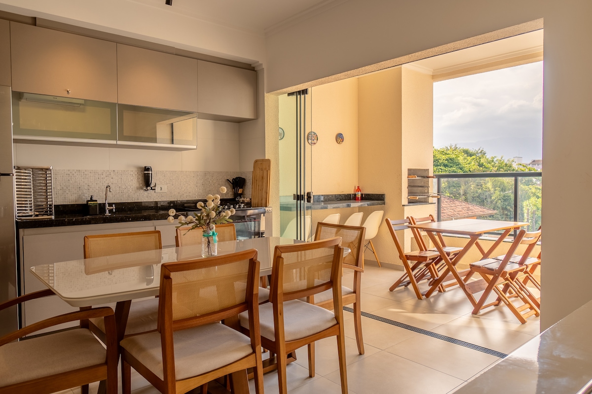 Nuevo estudio con diseño firmado por arquitecto, muy bonito y confortable. Se encuentra a 400 metros de la orilla de la playa de Perequê Açú. Contamos con: TV inteligente, Wi-Fi de fibra óptica, espacio de trabajo, cocina equipada, barbacoa en el balcón y una vista impresionante de la Mata Atlántica. En el edificio tenemos piscina, horno de pizza, ducha y garaje con puerta electrónica. Está muy bien ubicado, cerca del Centro y de la Rua Turística, además de la Rodovia.