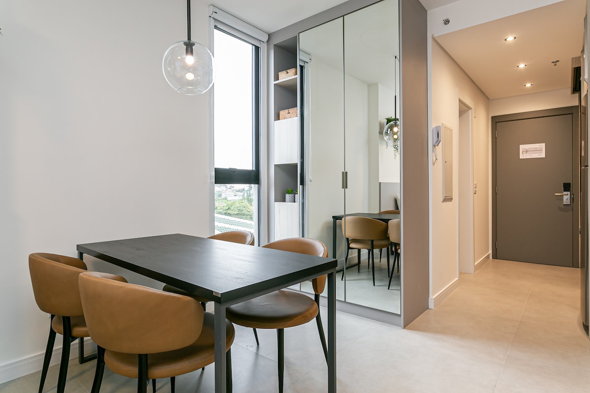 Estudio moderno con comodidad, aire acondicionado y gimnasio