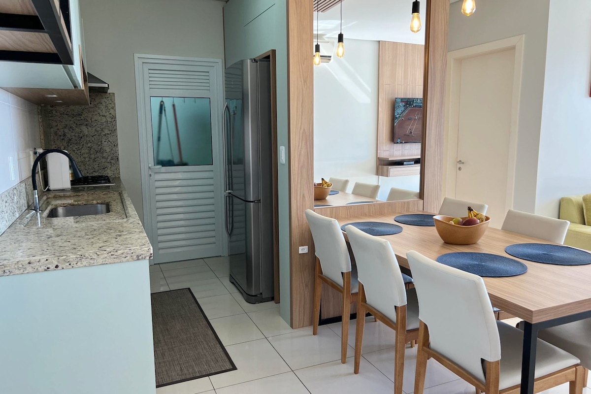 Apartamento nuevo, condominio de alto estándar a 100 metros del mar, bloque A frente a la piscina infinita. El balcón del apartamento tiene una barbacoa y una vista increíble de la Praia dos Ingleses. Muebles a medida. Dos habitaciones con aire acondicionado, 1 suite con Smart TV. Dos baños con calentador de gas, que proporcionan un baño relajante. La sala de estar con Smart TV permite el acceso a Netflix. Cocina completa. Área de servicio con lavadora y secadora. Garaje para 2 coches.
