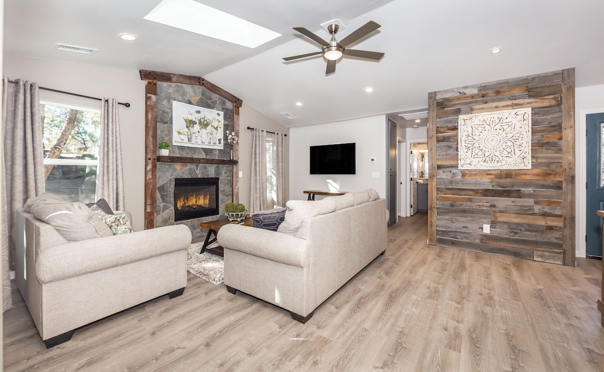 Disfruta de Prescott con lujo rodeado de rocas de granito y vistas increíbles de Thumb Butte y Granite Mountain. Perfecto para familias y parejas que buscan un alojamiento cómodo y lujoso. ¡Disfruta de las vistas de 360 grados de Prescott en la terraza mirador o pasa la noche en el patio trasero junto a la chimenea! Esta casa combina a la perfección la vida interior y exterior para crear una experiencia increíble. ¡Esta casa tiene todo lo necesario para una estancia inolvidable en Prescott!