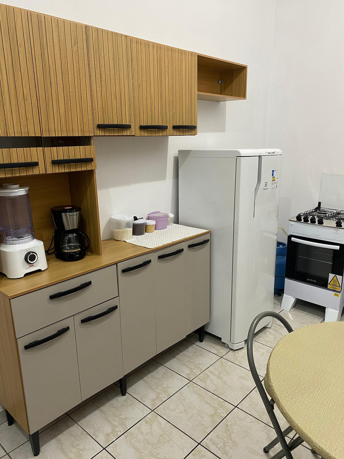 Kitnet cómodo y reservado. Está separada de la casa principal, lo que permite entrar y salir libremente. Tiene un dormitorio con cama doble, un baño y una cocina/sala de estar. Microondas, cocina sin horno, minibar y cafetera. Proporcionamos sábanas, almohadas, toallas y papel higiénico. No hay ducha eléctrica en este momento y no se permiten perros ni gatos