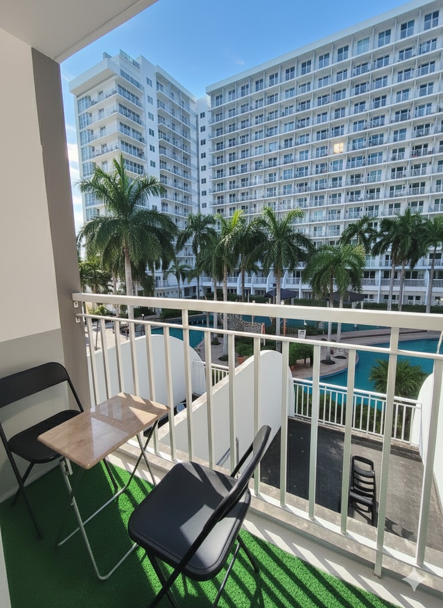 Shell Residences MOA Balcón de aparcamiento con vistas a la piscina