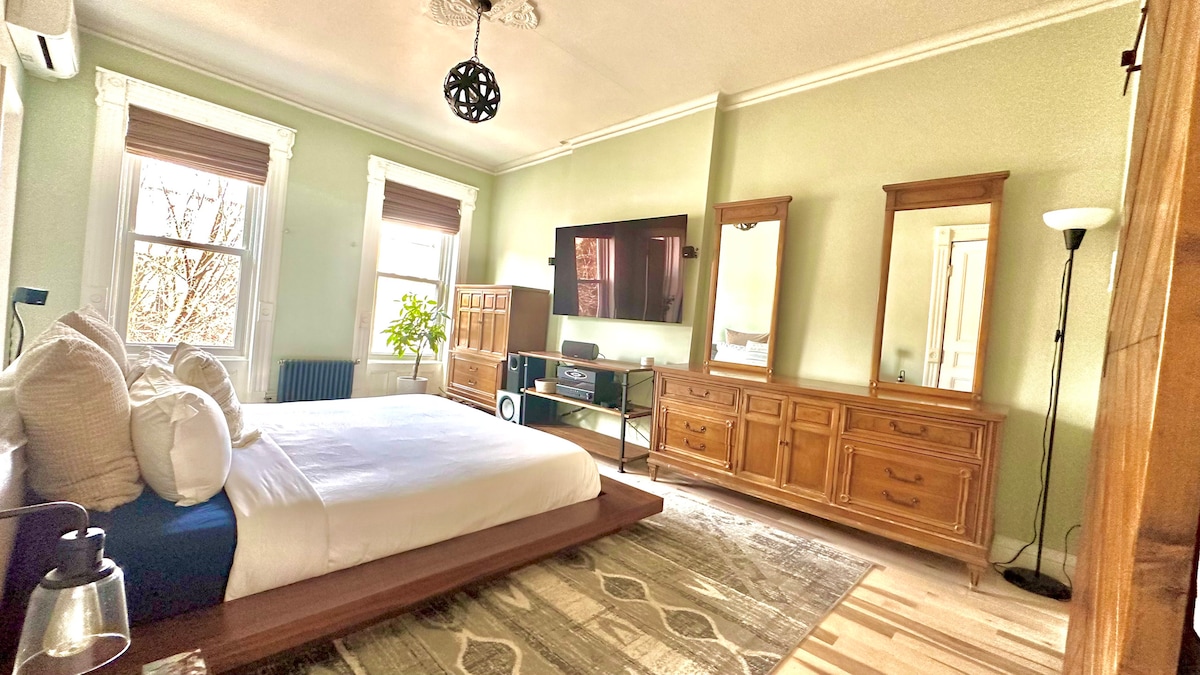 Lovely, private bedroom suite in historic house on your own private floor, including a private living room, private full bathroom in our house. Super Comfy Keetsa-SoHo full-size bed; organic, eco-friendly mattress. Full of light, charm, antiques and vintage elements; a poetic old-world feel. Original wood parquet floors and detailing. We are a clean, and courteous home, and expect you to be the same. Please reach out to us directly if you have questions about the # of guests limit.