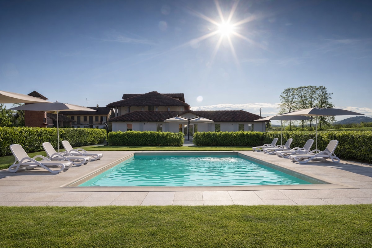 Cascina Montè - piscina privata vista Langhe