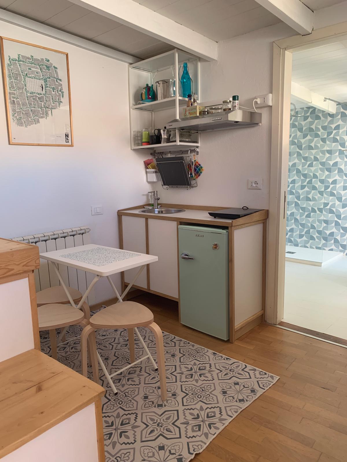 Estamos en el corazón del distrito de Castello, y pasando por un arco histórico entramos en un patio interior que alberga a Scuderie Reali, un distintivo loft de 35 metros cuadrados. Este pequeño enclave, donde hoy encontramos varias viviendas, una vez albergó los establos reales. El loft se ha sometido recientemente a un minucioso proyecto de renovación al tiempo que conserva los elementos característicos del propio establo. Por lo tanto, se creó una sala de estar, una cocina equipada, una zona para dormir elevada y un baño a partir del antiguo establo.