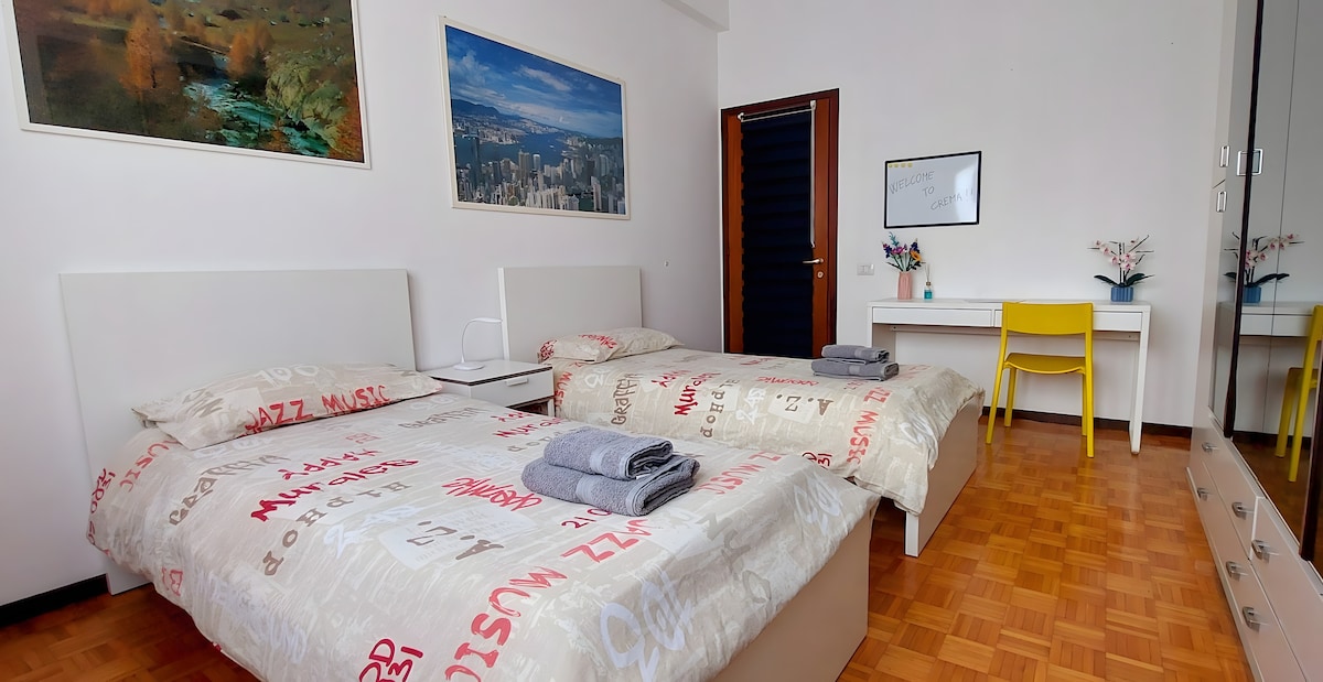 Bonito apartamento con espacio exterior privado y entrada independiente cerca del centro de Crema. El apartamento está equipado con todas las comodidades y es cómodo de llegar. La decoración es sencilla y acogedora, con vigas de madera a la vista. Un pequeño patio privado pavimentado en piedra permite comer al aire libre. La zona es muy tranquila y en 10 minutos a pie se llega al centro de la ciudad y a la estación. 3 bicicletas 🚲 disponibles de forma gratuita.