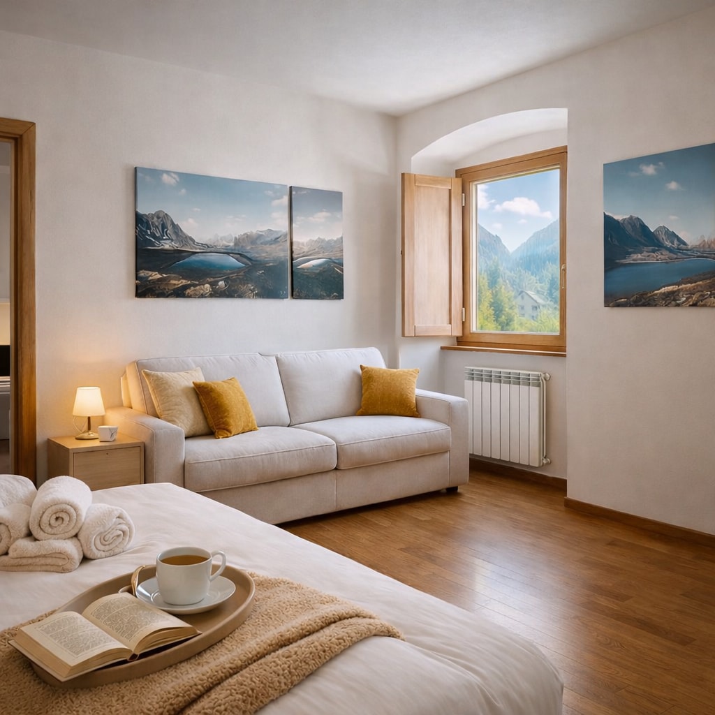 Apartamento a 3 minutos a pie de la Fiera y Policlínico con un pequeño jardín, cómodo estacionamiento, elegante y de diseño, ideal para estancias de negocios o eventos culturales. Ubicado en una zona verde y tranquila, garantiza relajación y privacidad, a la vez que está a pocos minutos a pie del centro de la ciudad. Una solución perfecta para profesionales y viajeros que buscan comodidad, estilo y funcionalidad. Wifi ultrarrápido. Cerca de la autopista, permite viajar rápidamente a otras ciudades.
