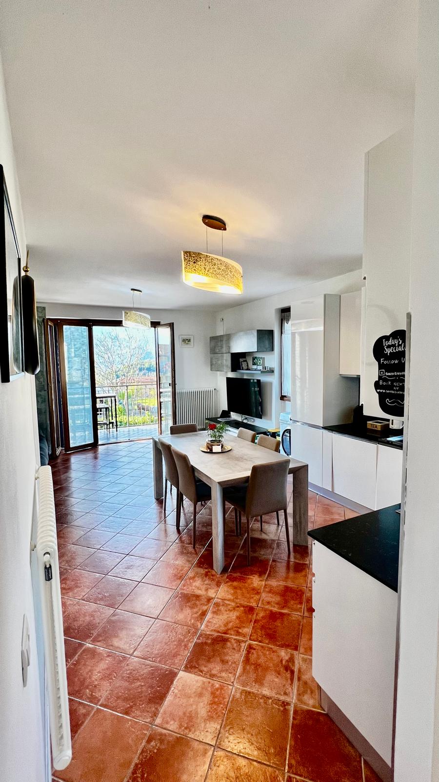 Apartamento a estrenar con fantástica terraza con vistas al lago disponible para seis / siete camas con aparcamiento privado gratuito, lavandería y sala de planchado con asiento para bicicletas y/o equipamiento para cometas) amueblado en estilo provenzal, completo con muebles y vajilla) baños dobles, ideal para familias y grupos de amigos. Posibilidad de utilizar la piscina a 250 mt de la estructura compartida con Villa Quattro stagioni