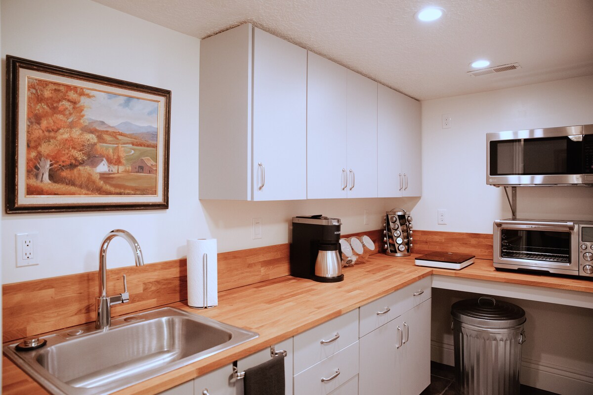 Bienvenido a nuestra encantadora suite de huéspedes NUEVA situada en Orem. A pocos pasos del parque/piscina/teatro SCERA, a 8 minutos en coche de la I-15, BYU, UVU y Provo Canyon. A 5 minutos de Costco, Trader Joe's, Smiths y Target. ¡A 20 minutos de Sundance Resort! La sala de estar está amueblada con un sofá cama, TV inteligente y mantas. La cocina está equipada con una freidora de aire, microondas, mininevera y Keurig. Lavadora, secadora y detergente incluidos. El dormitorio tiene un televisor inteligente y un espacio de trabajo con un baño privado equipado con lo esencial.