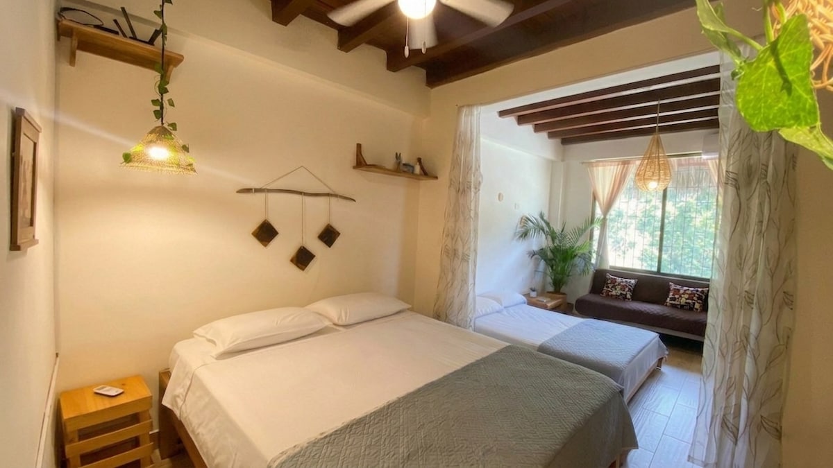 Despierta con el sonido de las olas y una vista increíble al mar desde las dos habitaciones. Estamos a pasos de la arena, en la tranquila playa de Las Tunas, con restaurantes justo al lado. Disfruta los atardeceres desde el balcón, mira tortugas nacer todo el año y ballenas de julio a octubre. La casa tiene todo lo que necesitas: camas cómodas, cocina equipada, internet rápido y hamaca en la terraza. Ideal para relajarte, surfear o explorar. Nota importante: No contamos con garage interno