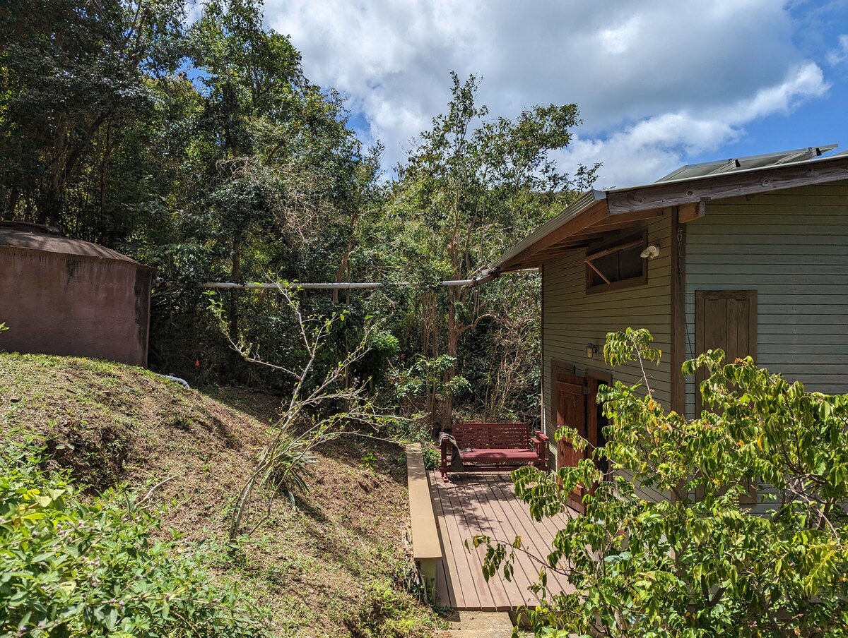 La Paloma es nuestra tercera unidad en Birdnestudios, sentada en lo alto con una vista espectacular. Es un nuevo concepto de vida al aire libre abierta con energía solar, jacuzzi privado, cocina ,comedor,dormitorio y baño de servicio completo. Abre la puerta de tu dormitorio a un espacio privado abierto (techado y con barandillas) protegido por cortinas blindadas que subes o bajas para administrar tu privacidad,disfruta del aire libre desde el "interior",barbacoa, ventiladores de techo, aire acondicionado, hamacas, mucha privacidad. Se proporcionan toallas, sillas y refrigerador.