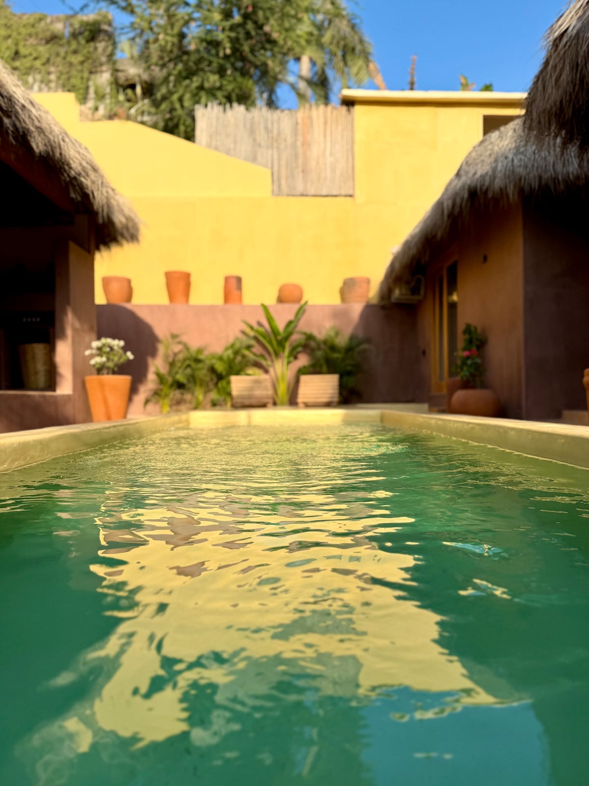 Welcome to our hidden gem! Your stay includes a a daily breakfast, all set against stunning ocean and mountain views. For an extra touch, opt for our Cacao Ceremony, yoga class with Laura (@lauraortegayogaa) or massage packages. Unwind in inviting natural spaces, a fully equipped kitchen, and a private biopool, with daily housekeeping and high-speed WiFi. Follow us on Insta @casadelatierramx. Get ready to disconnect from the hectic pace of everyday life in your Bamboo House!