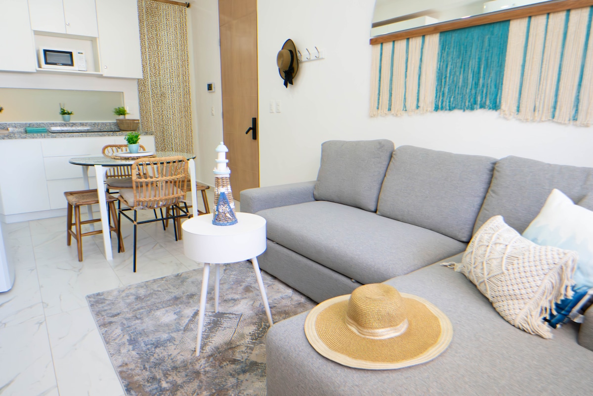 Ocean breeze & pure relaxation. Fall in love with Puerto Morelos ♥️ A perfect beachside escape just 15 minutes south of Cancun International Airport—ideal for the first or last stop of your trip. Located on the south beach side of Puerto Morelos, this modern one-bedroom condo offers comfort, style, and a great location in the heart of the Riviera Maya. An amazing location, on the beach street, just a whortwalk to the ocean, restaurants, cafés, supermarket, and the charming town square.