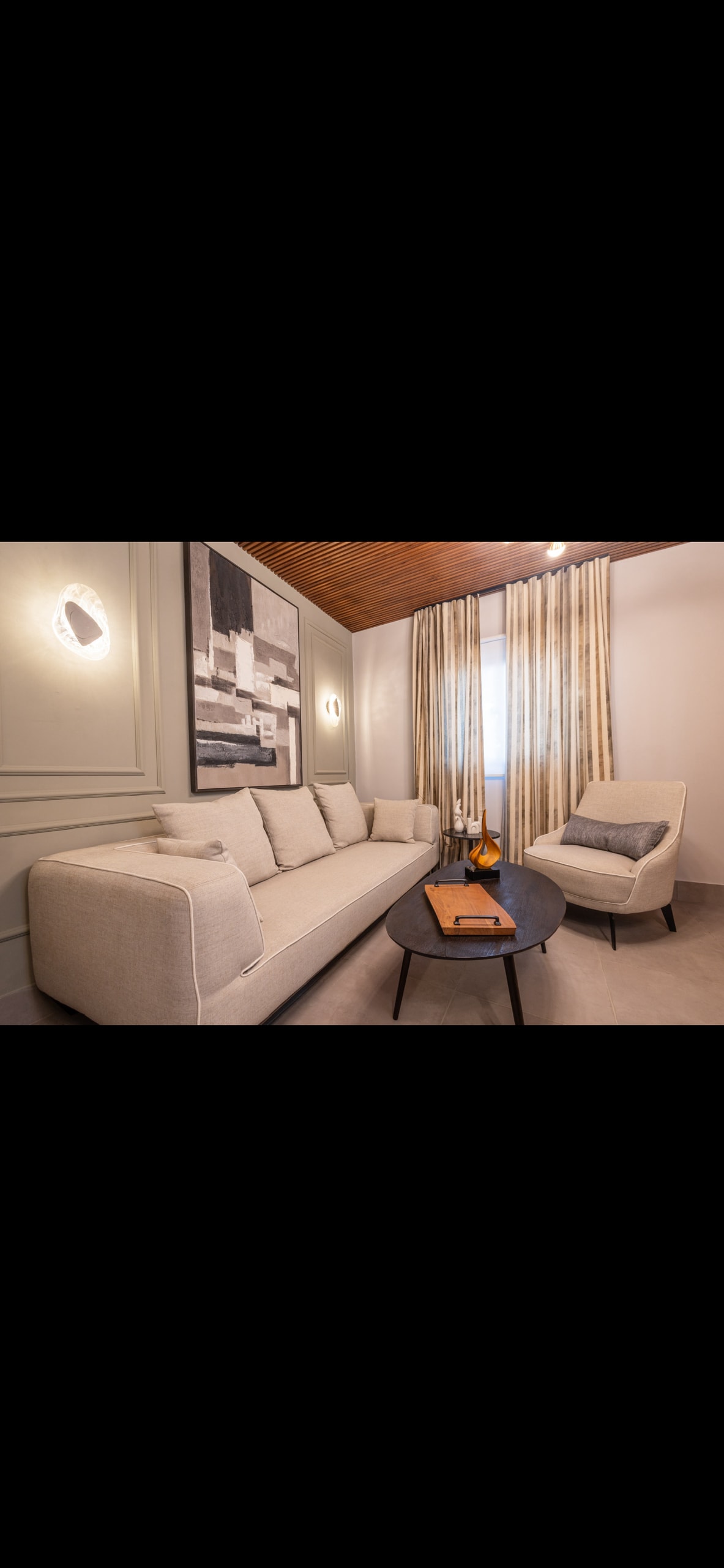 Céntrico y cómodo Apto. de 1 Hab. con Aire Acond., 2 Ventiladores de techo, cama King con tecnología Doble Pillow Top y 4 almohadas, WIFI banda ancha, TVs de 58" y 43" con Netflix, HBO Max & Disney Plus Gratis. Sofa cama y cuna opcional. Sala con cómodo mueble, ducha caliente y drenajes tecnología Anti-Insectos. Nevera ejecutiva con congelador, estufa de gas y extractor, microondas, cafetera, meseta y gabinetes. Moderna Caja fuerte, 2 detectores de humo y CO2 y extintor contra incendios.