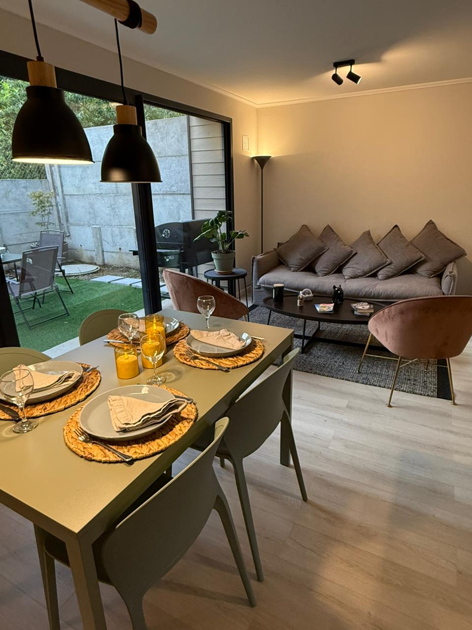 Moderno loft en exclusivo condominio de Puerto Varas, rodeado de naturaleza. Amplios ventanales iluminan el espacio y brindan privacidad y tranquilidad. A solo 8 minutos del centro y con acceso rápido a rutas principales, es ideal para explorar lagos, volcanes y gastronomía local. Perfecto para parejas y viajeros que buscan comodidad y conexión con el sur de Chile. Disfruta una experiencia única con jacuzzi exterior, áreas verdes, parrilla y un ambiente ideal para descansar y renovar energía.