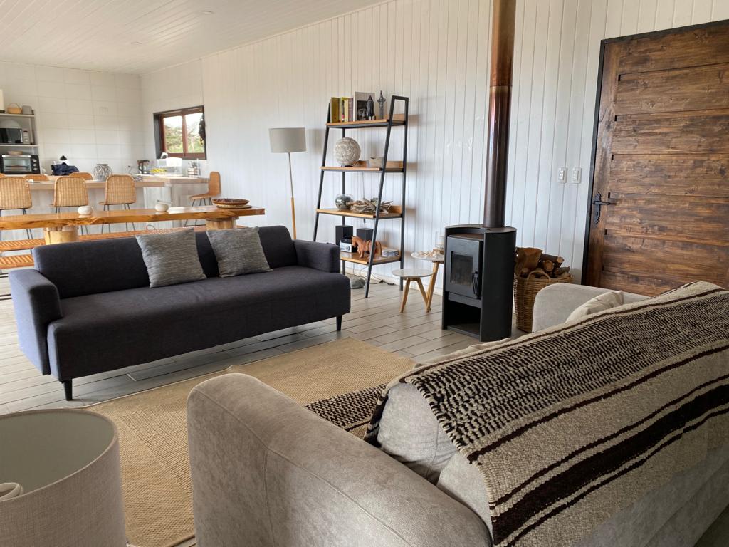 Relájate en este espacio tranquilo y elegante, Bush Lodge se encuentra en Cahuil-Pichilemu, a solo 5 min de la laguna de Cahuil y 10 min de Punta de Lobos. Cabaña inmersa en un bosque de eucaliptus, ideal para desconectar de la rutina y el estrés. Cuenta con: - Tinaja y terraza privada - Parrilla - 2 dormitorios - Cocina equipada - Calefacción - Internet Starlink - Sabanas y Toallas - Baño privado - Estacionamiento privado