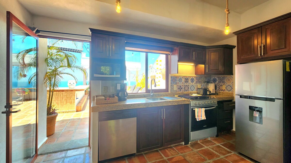 Discover full service and the chic beach lifestyle at Casita Camino al Mar, a 3 bedroom, 2 bath private villa perfectly situated just a ½ block (30 second walk) to the longest sandy beach in the bay and a short walk to shops, markets and cafes in the heart of Bucerias “Zona Dorada”. Enter the villa through 100 year old Mesquite doors, hear the trickle of Mexican fountains and step back in time. You will be greeted by the best hospitality Mexico has to offer with a cold margarita and a smile!