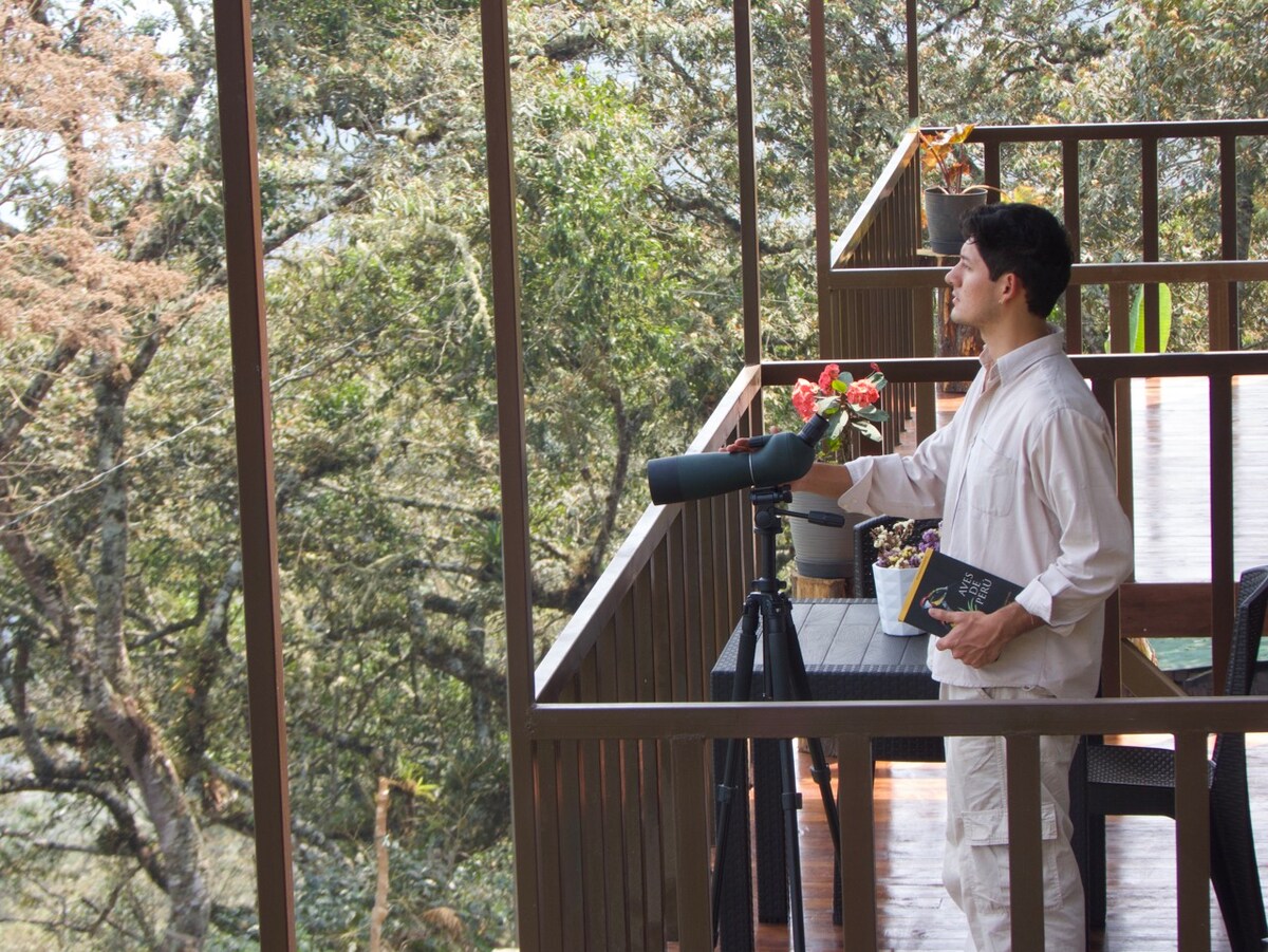 Amplia suite matrimonial en un bungalow privado, con una vista espectacular a las montañas. Acceso a restaurante con deliciosa comida , actividades de aventura como escalada, canyoning, senderismo y ciclismo de montaña, experiencia en la obtencion de Café, excelente zona de avistamiento de aves siendo el Gallito de las Rocas nuestro principal referente.