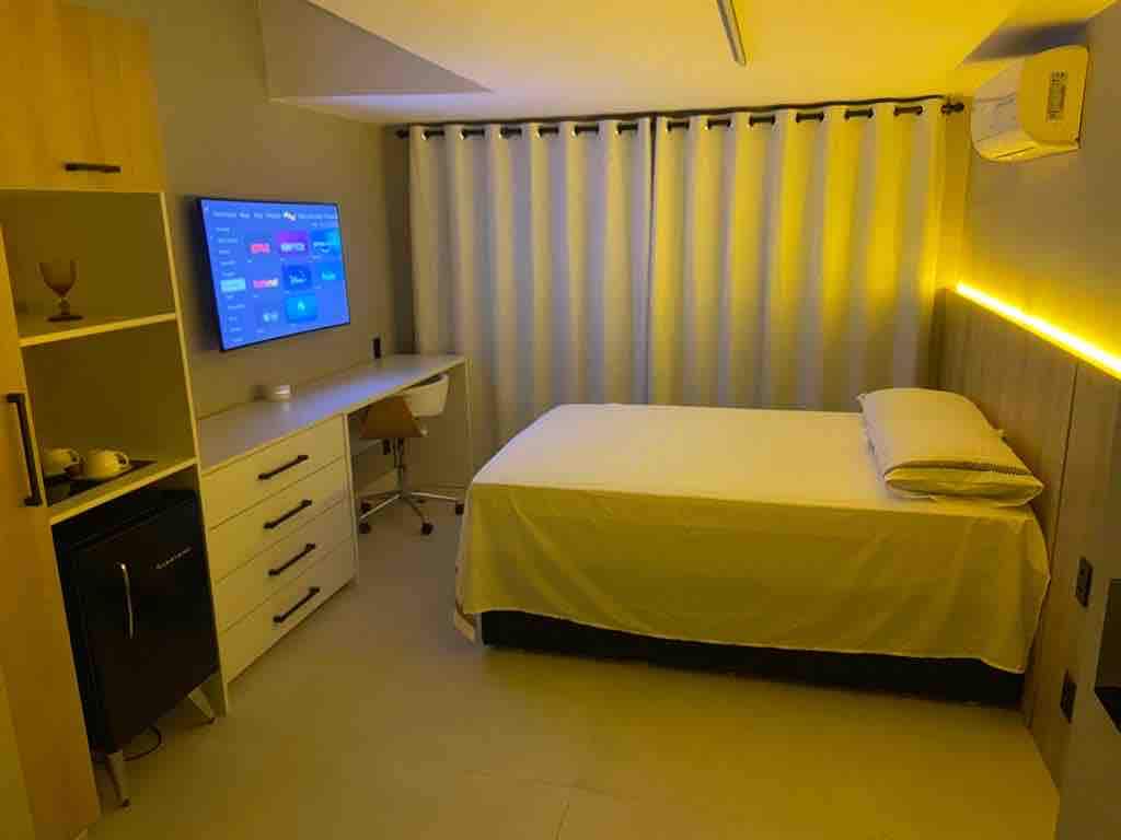 Loft recién reformado, con decoración limpia, cerradura digital, dormitorio y sala de estar integrados con cocina americana y totalmente equipada. Moderno y seguro, este alojamiento se encuentra en un condominio con conserjería 24 horas y cámaras de seguridad, en una de las mejores ubicaciones de Copacabana (posto 5), junto al Museo de la Imagen y el Sonido, con vistas al mar, rodeado de una amplia variedad de servicios, como bares, restaurantes, lavanderías, mercados, bancos.