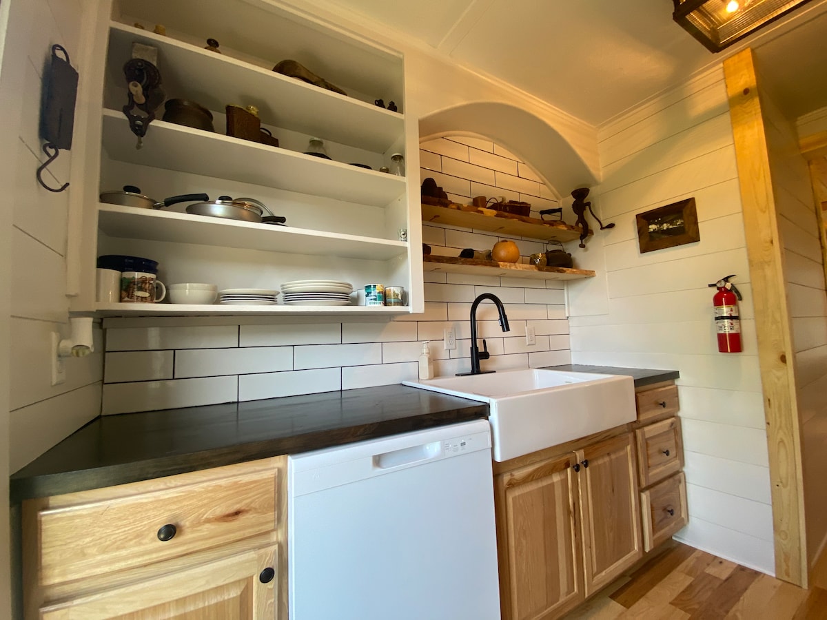 The Roost is a custom build with quality craftmanship. It's set among old growth cottonwood trees in a relaxed older neighborhood that feels like the country. You'll have the entire guesthouse to yourself, May- Oct. there is a small patio to bbq and a yard with fire table and 4 Adirondack chairs to enjoy the many birds and deer in the summer. Downstairs is a queen bed/bath with a trundle in the loft. Fully equipped kitchen with small stainless gas range, apartment sized fridge and dishwasher.