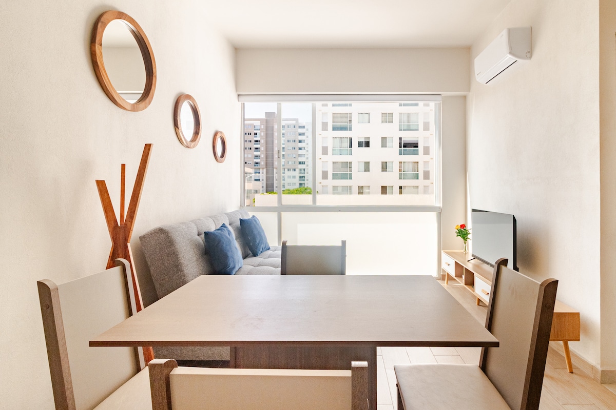 -22nd floor swimming pool -Beautiful gym with city views -Fully equipped for long stays -Parking available (at additional cost) - Housekeeping service: Once a week for reservation of +7 nights Whether traveling for work or leisure, you'll enjoy this modern studio in a brand-new luxury tower in the Providencia neighborhood, near the Midtown Jalisco shopping mall.
