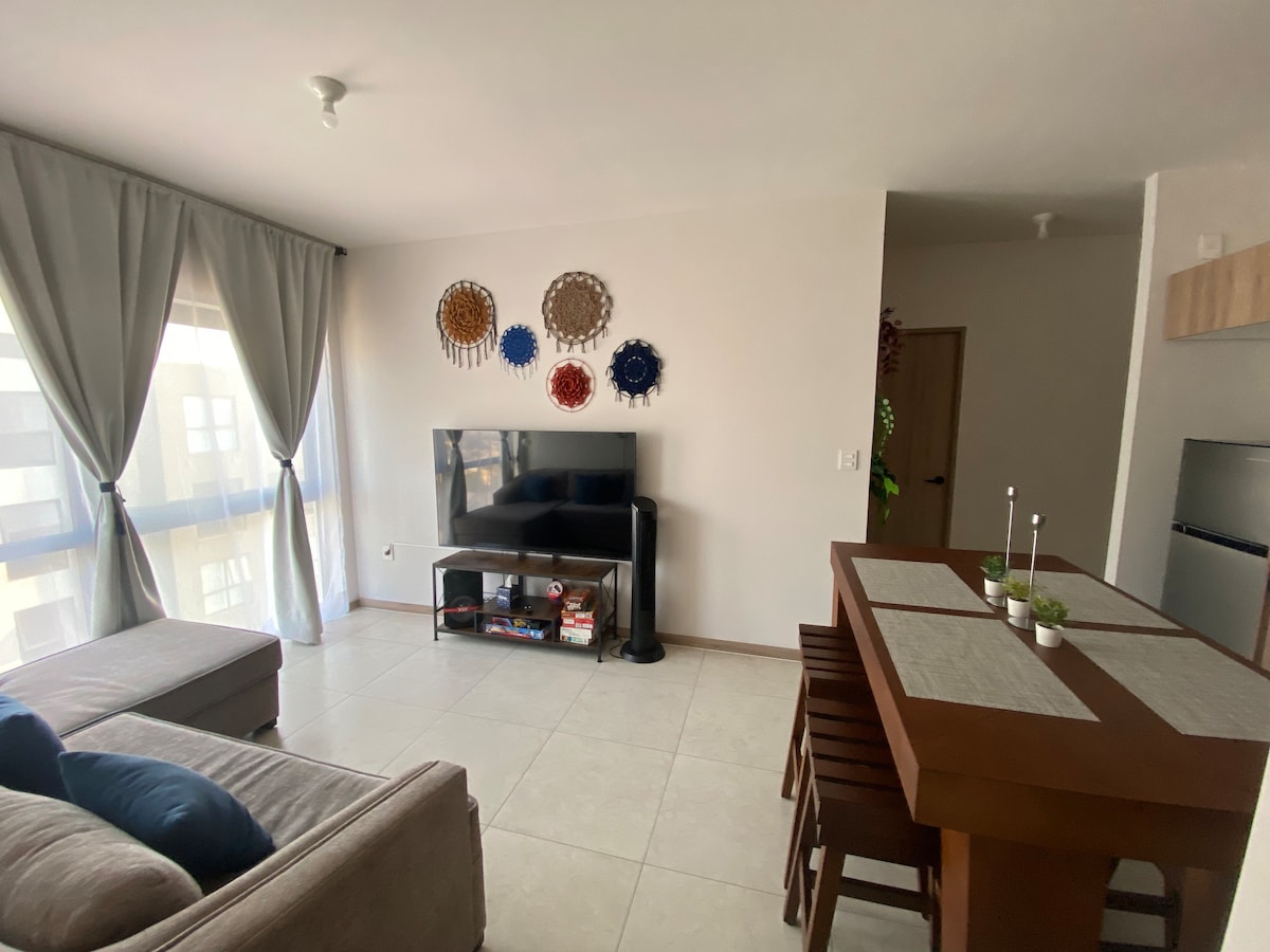 Bonito Departamento completo nuevo de lujo amueblado con vista panorámica hacia la ciudad en el piso 12, cuenta con gimnasio, areas sociales, roof garden, terraza, jardines, cancha de fútbol, estacionamiento para 2 carros, acceso con seguridad 24 horas, esta muy cerca de sams, home depot, Zoológico, a 5 min de la barranca de Huentitán, a 20 minutos del centro comercial andares, 15 min del centro, acceso a escuelas y vias de distribución principales. Pantalla de 65" wifi, netflix bien decorado