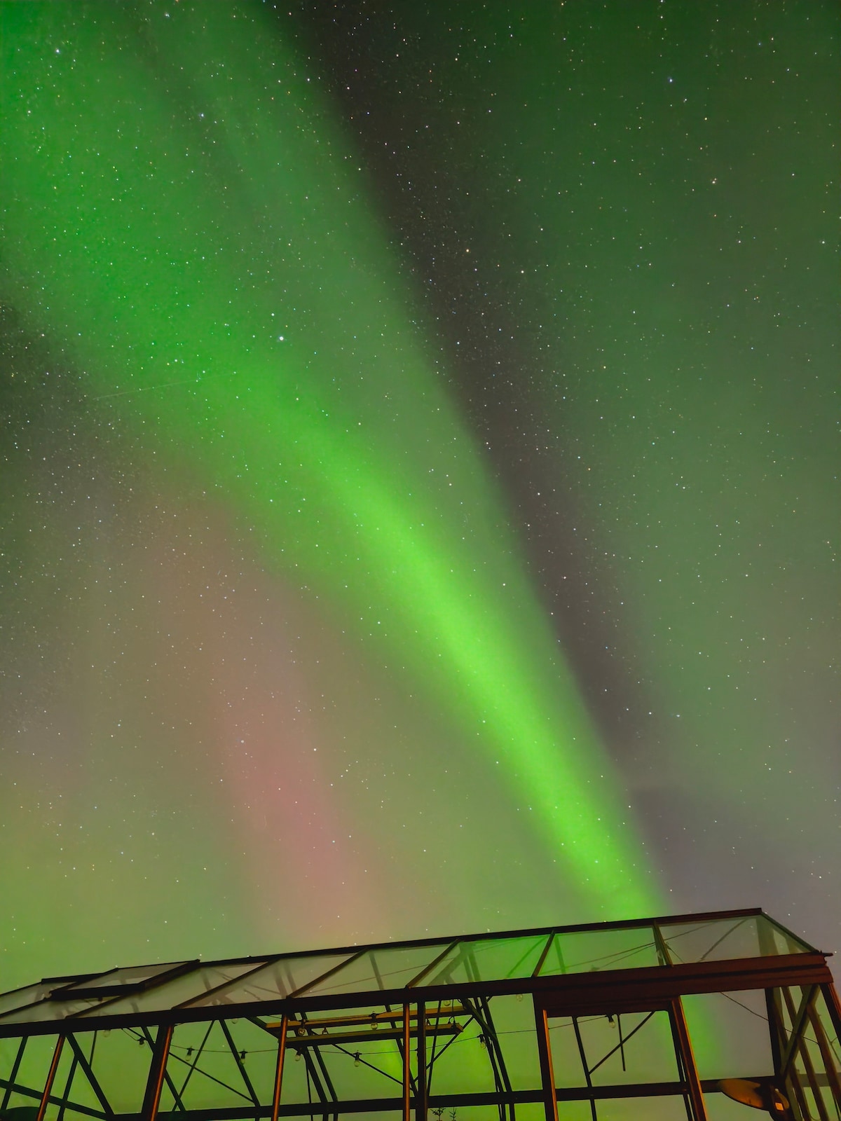 Cabaña con jacuzzi de hidromasaje y vistas a la aurora boreal.