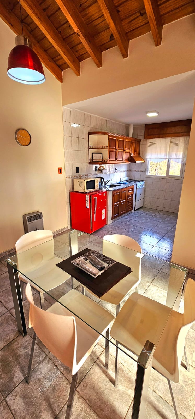 Duplex Kirara de Categoría, p/5 personas, 90 m2, excelente ubicación geográfica acceso inmediato al centro de la ciudad de San Juan, el aeropuerto en 7 minutos, al microcentro en 7 minutos y a la terminal de ómnibus en 5 minutos. Living comedor, balcones, excelente vista y a viñedos y montañas, cocina con desayunador, 2 dormitorios, 2 baños completo y baño de servicio, aire acondicionado, calefacción, Cochera en el mismo edificio, provisión de ropa de cama y ropa blanca.