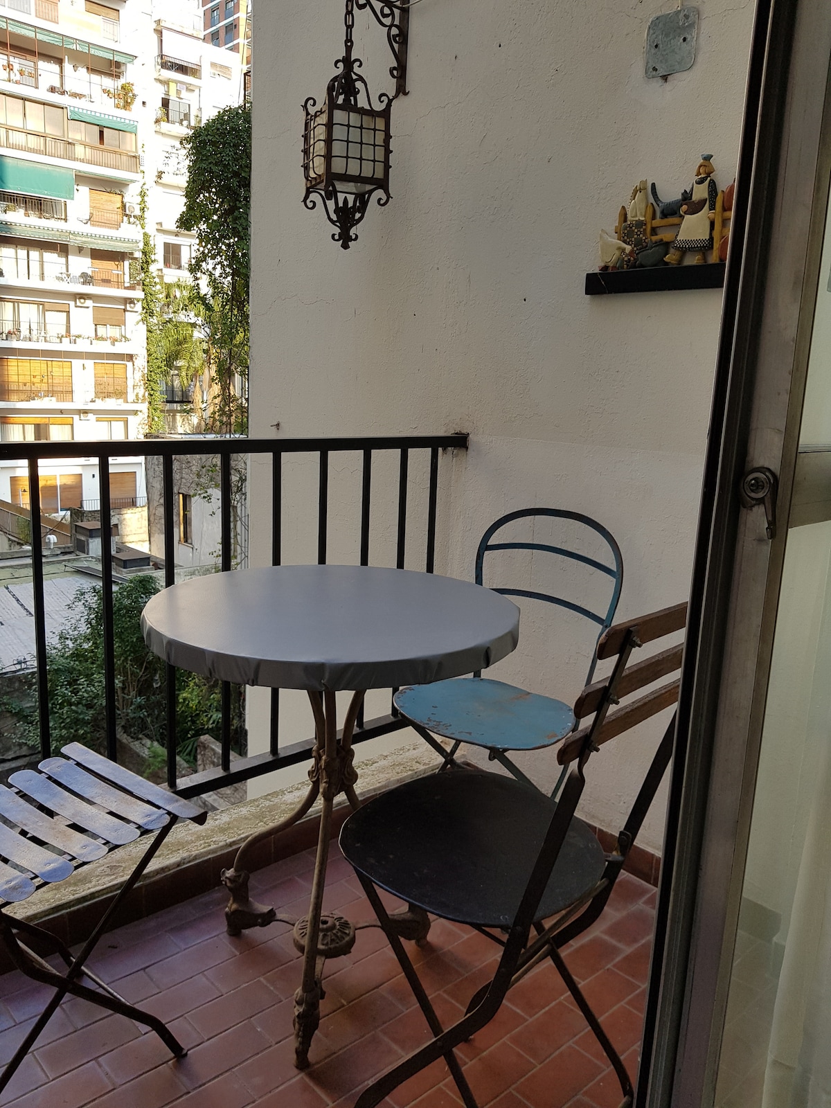 Espacio ÚNICO en plena Recoleta, con un PATIO PRIVADO lleno de verde y con todo el equipamiento para una muy cómoda estadía. ADEMÁS: el edificio cuenta con SEGURIDAD 24 horas, GYM, SAUNA y una PISCINA. Se puede sentir la tranquilidad de los árboles y los pájaros a la vez que se está a metros de las avenidas Santa Fe y Callao. El patio está amoblado con mesa de exterior con parasol, reposeras, deck y una PARRILLA. Esto lo convierte en un espacio muy especial, tranquilo y difícil de encontrar.