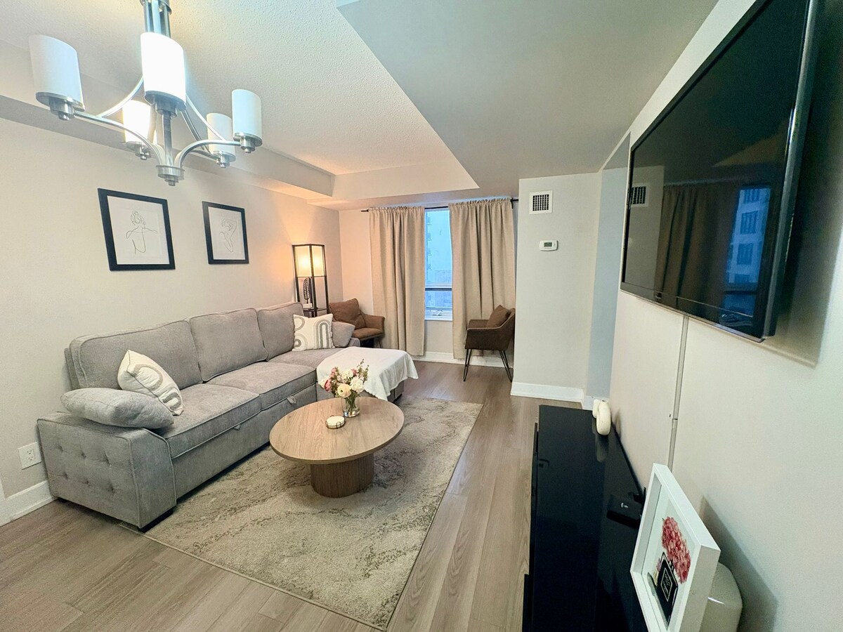 Elegante refugio de 2 habitaciones en Toronto con estacionamiento
