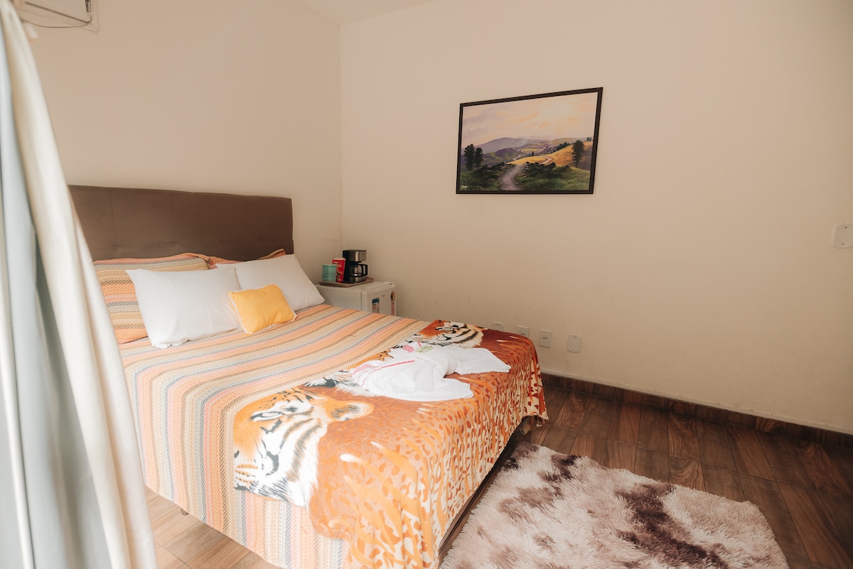 Acogedora suite en el centro del pueblo de Mauá. Una cómoda cama que te espera para descansar después de un hermoso día de turismo por la región. La suite también cuenta con un sofá cama con TV, internet, minibar y si es un día o una noche calurosa de verano, el aire acondicionado garantiza su bienestar.