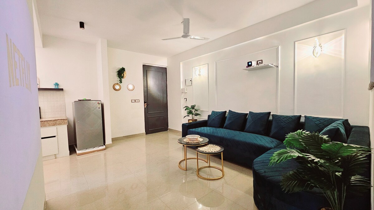 Tanto si viajas por vacaciones como por trabajo, tendrás un apartamento privado para ti y tu familia, equipado con instalaciones modernas como wifi, TV inteligente de 55 pulgadas, lavadora, microondas y mucho más, en un barrio tranquilo de la zona residencial, para que puedas llevar a la familia a este fantástico alojamiento que tiene un montón de espacio para divertirse. Es un lugar genial. Es agradable e higiénico, está a 10 minutos del fuerte Neemrana y a 5 minutos de la autopista nacional NH8. Muchas opciones gastronómicas.