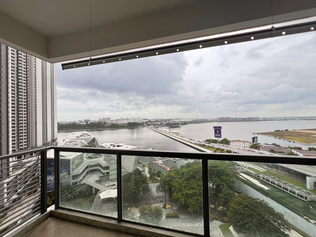 ¡Ubicación estratégica con el famoso centro comercial R&F justo al lado del apartamento! ¡Puedes disfrutar de comida coreana, china, cafeterías y el mercado nocturno de fin de semana a poca distancia a pie! Tenemos Smart TV con aplicaciones de YouTube y Netflix. ¡Disfruta de una vista de piso alto desde el balcón con unas vistas impresionantes frente a la vista al mar de la calzada elevada de Singapur! ¡Rodeado de centros comerciales y una amplia variedad de sabrosa comida local! - A 1 minuto a pie del centro comercial R&F. - A 5 minutos a pie de JB CIQ. - A 3 minutos en coche de JB Culture Street y del mercado nocturno Bazaar Karat. - A 5 minutos de la bahía de Danga.