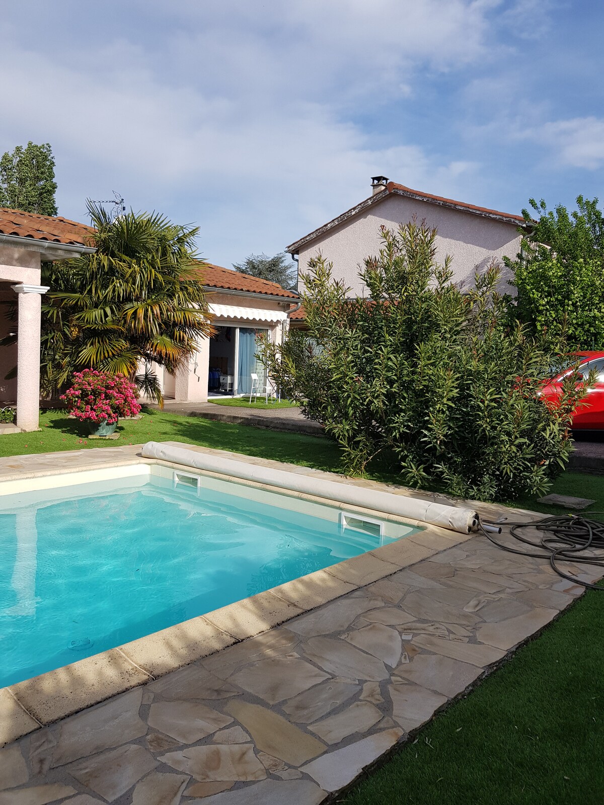 Duplex classé meublé de tourisme 2⭐ avec entrée séparée, jardin et piscine partagée🏊♂️ en saison. Rez-de-chaussée : kitchenette équipée, idéale pour petits-déjeuners et repas simples, et salle de bain. Étage : 2 chambres climatisées et salon TV + clic-clac, aménagés sous les combles, pièces en enfilade. Quartier calme, proche métro/tram Vaulx-en-Velin La Soie et commerces. Stationnement gratuit. Nous vivons sur place, l’espace voyageurs est totalement séparé pour confort et intimité.