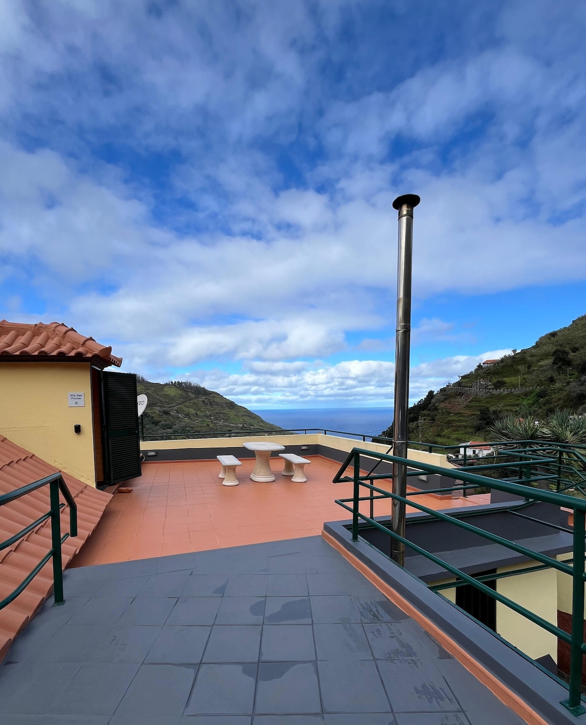 Lazy Lizard by the Ocean - Attic Studio with an area of 38 sqm and a terrace with ocean and mountain view of 17 sqm and offers a serene escape with breathtaking ocean views and a traditional atmosphere. This charming retreat is perfect for those looking to unwind and enjoy the natural beauty of Madeira. The studio have a equipped kitchen and bathroom, a double bed and a sofa, smart 101 cm TV, fiber optic internet 500/100. The access is on the separately stairs from the rest of the building.