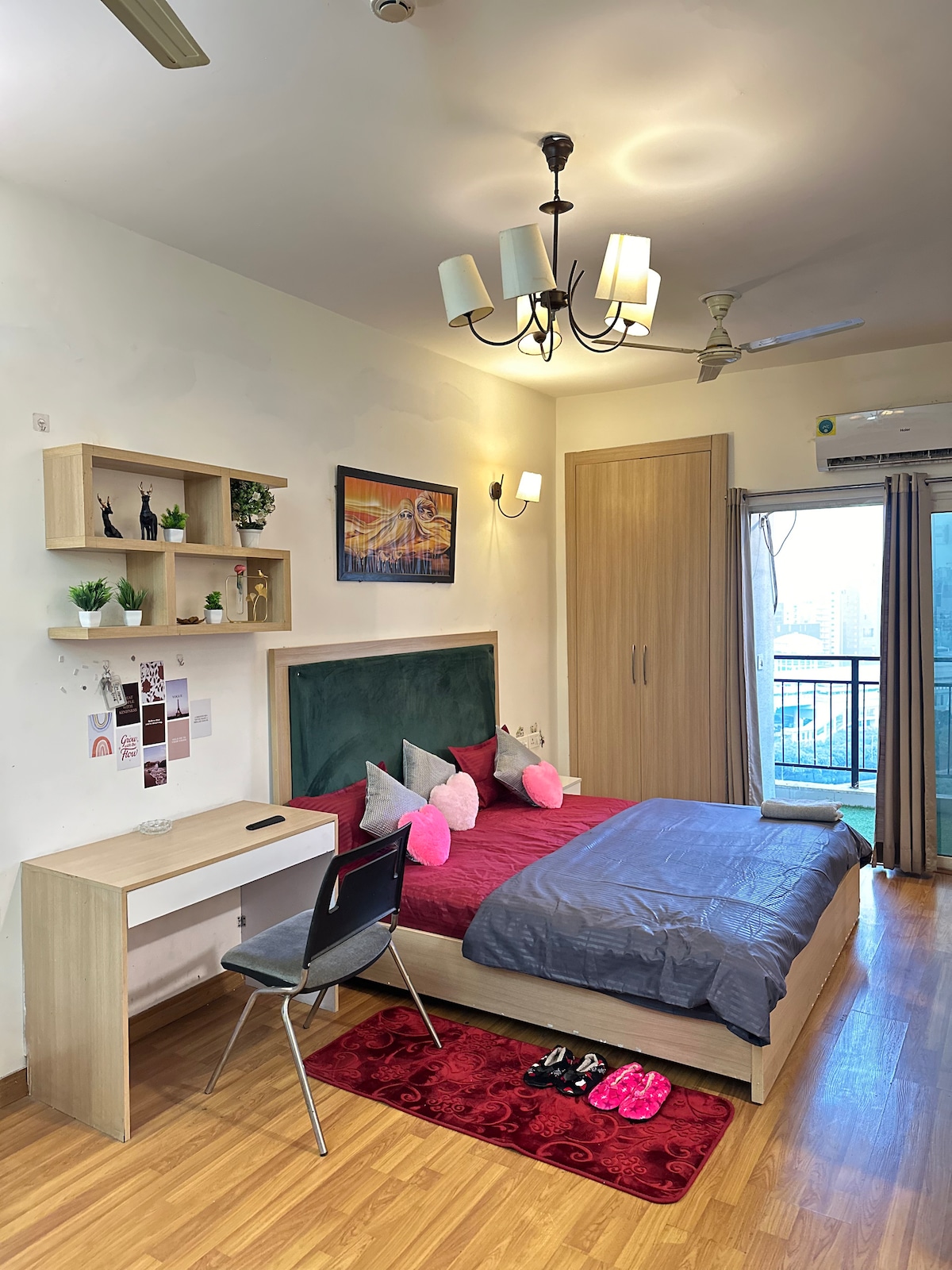 Good Monthly stay discounts available. Kick back and relax in our elegant & fully furnished studio. The earthy interiors will calm you like a boutique hotel experience. A combined charm of English design elements and luxury that offers comfort and style in every corner. We've designed this space with the same care and attention to detail as we were to live here ourselves, prioritizing comfort, style, and authenticity. Top floor | Fast WIFI | Private Balcony | Heart of Noida