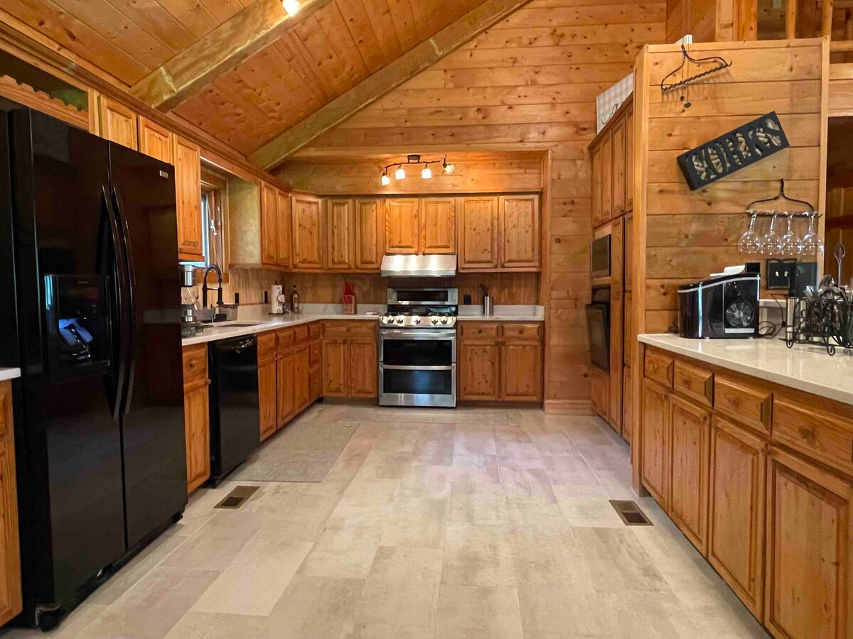 En este alojamiento se respira tranquilidad: ¡relájate con toda la familia! La casa tiene una cama tamaño king en el dormitorio principal con baño adjunto, un dormitorio secundario con 2 camas queen, un baño adicional en el pasillo y un sofá cama queen en la sala de estar. Se encuentra en un estanque con un muelle de pesca. Tendrás acceso a pescar y relajarte en nuestro estanque de captura y liberación. El espacio al aire libre también incluye un patio con parrilla de gas, un gran porche delantero con vistas al estanque, un porche trasero cubierto con vistas al bosque y un pozo para hacer fogatas.