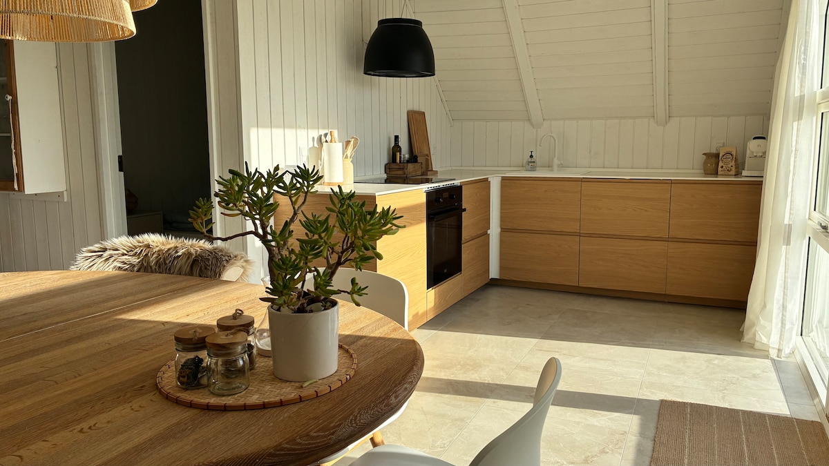 ¡Bienvenido a nuestra acogedora casa de campo con vistas impresionantes del paisaje de dunas de la costa del Mar del Norte! Relájate frente a la chimenea de leña, disfruta de las delicias danesas en la cocina abierta y date el gusto de pasar unas horas de relax en la sauna o en el jacuzzi de leña en las dunas. Un lugar perfecto para alejarte de todo y experimentar la belleza de la zona. ¡Esperamos recibirte pronto! También es ideal para windsurfistas. Cerca de la zona de windsurf.