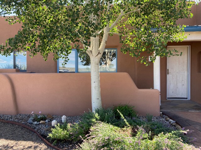 Bienvenidos. Una habitación tiene una cama "rey" con un baño. La otra habitación tiene una cama matrimonial y un baño al lado. Un porche tiene vista de la mesa al oeste. El porche trasero tiene vista de la montaña. Hay un pared de adobe. En esta area hay una parrilla. Este condominio es nuestra casa afuera de la casa y esperamos que ustedes se disfruten también. Aquí en Taos, se puede esquiar, escalar las montañas, montar bici, pescar, y apreciar de la cultura y el arte.