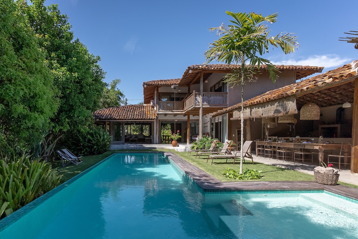 Casa em condomínio cerrado com vigilância 24h — a apenas 8 minutos de carro das praias e do Quadrado. Conforto e praticidade garantidos com serviço de concierge completo: agendamos restaurantes, fazemos suas compras no mercado antes da chegada, além de oferecer treinador pessoal, massagista, aulas de yoga — para que você viva sua estadia com tranquilidade e bem-estar desde o primeiro instante. Reformada com amor, mantendo o estilo rústico.