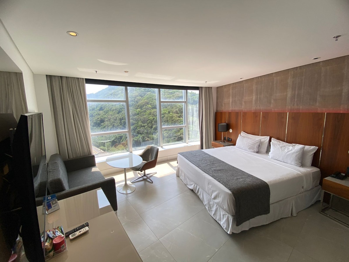 Este lugar único tiene su propio estilo, lleno de encanto y con una hermosa vista del mar, con sus ventanas gigantes y el mar todo allí, para que puedas admirar y enamorarte de esta magnífica vista. Definitivamente querrás despertar y disfrutar de un desayuno allí o una impresionante puesta de sol... ¡Esta habitación está ubicada en el Icônico Hotel Nacional de Río de Janeiro, con toda su historia, hermosa infraestructura y ubicación privilegiada! ¡Ven a divertirte y enamórate!