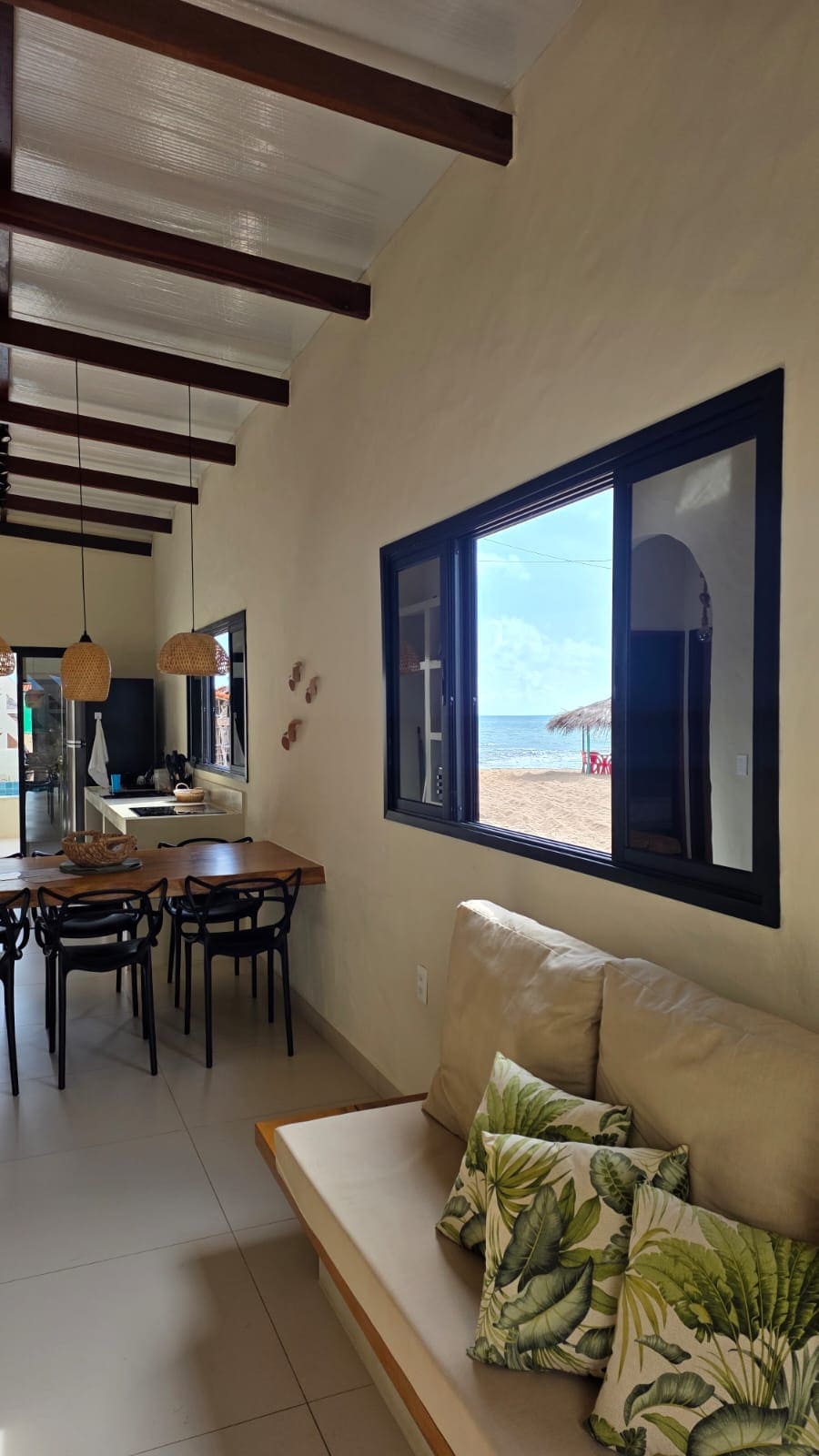Una casa elegante y confortable, totalmente climatizada, con balcón y terraza en un condominio a pie de playa y con vistas al mar y a los árboles del jardín vecino. La terraza tiene un jacuzzi privado y vistas a la hermosa puesta de sol de la playa de Maceió. El condominio es exclusivo, con solo 4 casas y tiene un área de ocio completa, con barbacoa y piscina.