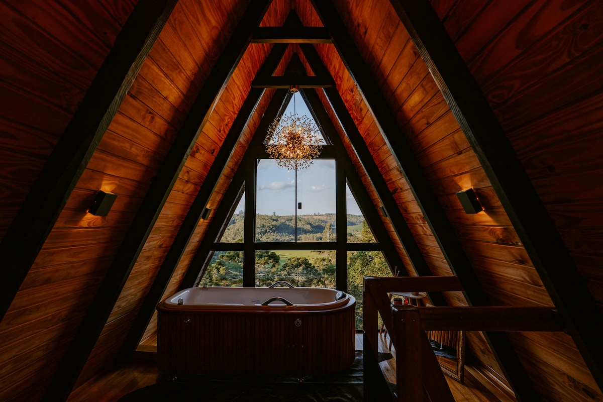 Chalé das Araucárias es un oasis de lujo en medio de la naturaleza de Itaiopolis, SC. Con su imponente arquitectura en forma de A, este chalet ofrece unas vistas impresionantes de las majestuosas araucarias. Disfruta de lo mejor de la comodidad moderna: un sofisticado salón, una cocina gourmet, un baño de diseño impecable y un dormitorio con bañera de hidromasaje, donde cada detalle ha sido pensado para ofrecer una experiencia única y lujosa. Un refugio exclusivo para renovar cuerpo y alma.